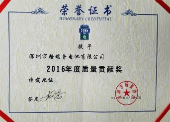 深圳市質量貢獻獎(2016)